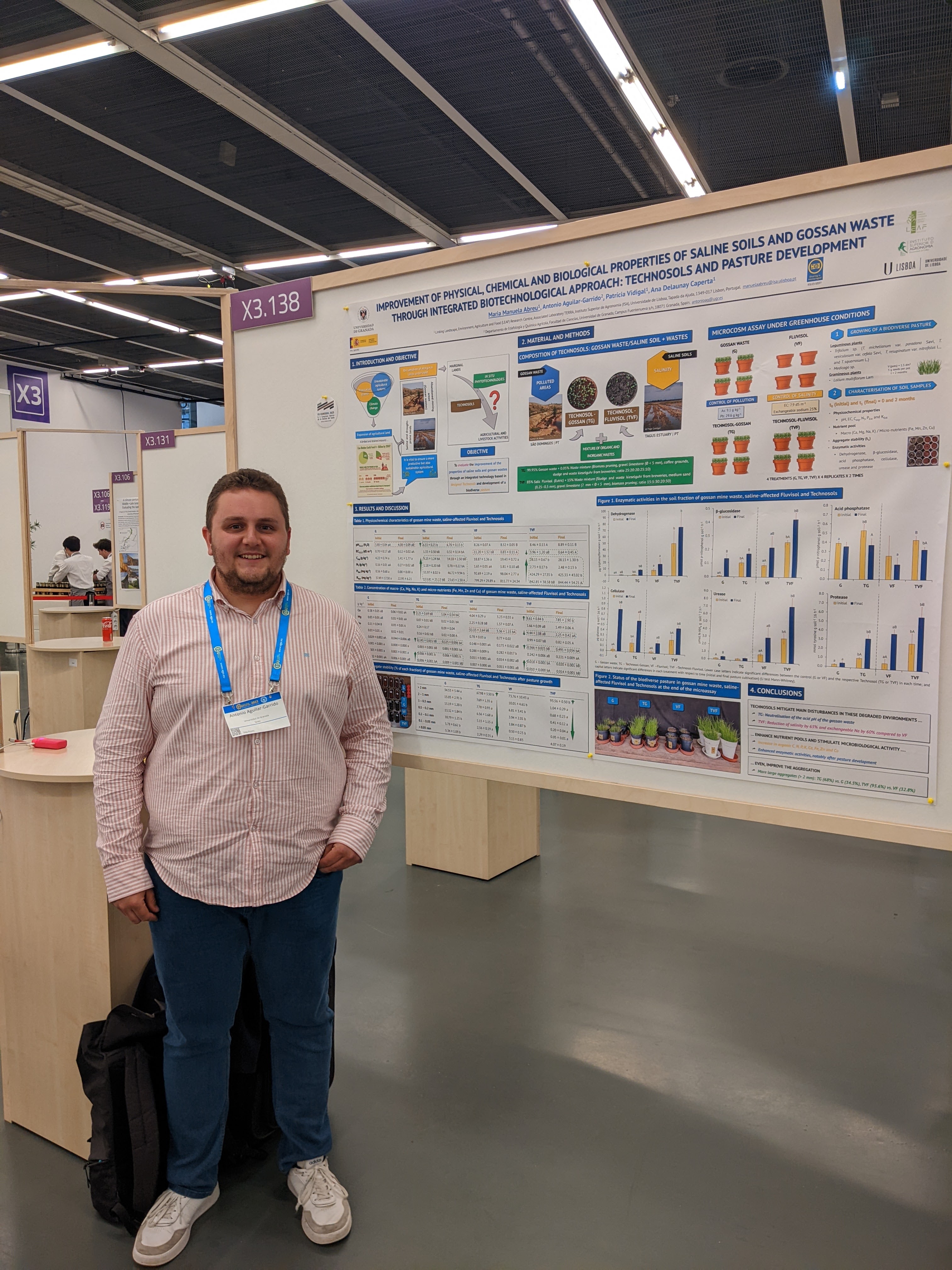- Abreu, M. M.; Aguilar-Garrido, A. ; Vidigal, P.; and Caperta, A. D. (2023). Improvement of physical, chemical and biological properties of saline soils and gossan waste through integrated biotechnological approach:Technosols and pasture development. EGU General Assembly 2023, Vienna, Austria, 23–28 April 2023, EGU23-10077, doi: 10.5194/egusphere-egu23-10077 (Poster)